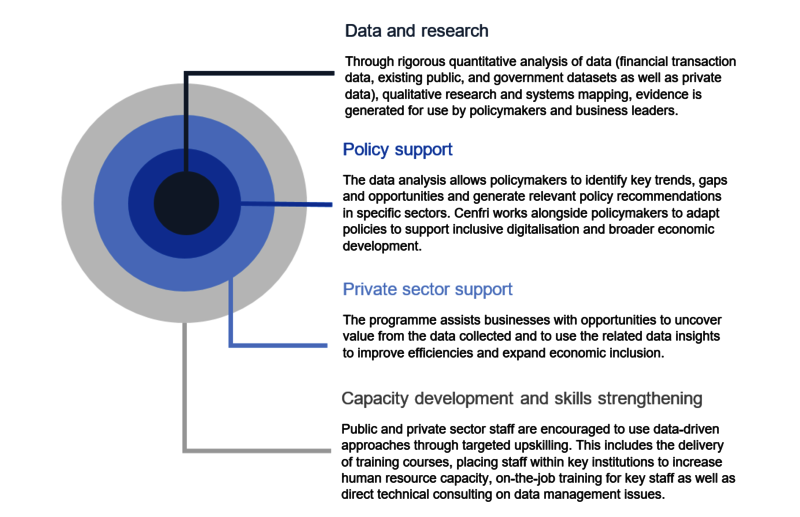 We catalyze data-driven policymaking and private sector decision-making through four areas of work: